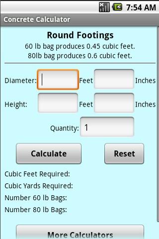 This free concrete calculator estimates the amount of concrete necessary for a project, and can account for different shapes and amounts of familiarize yourself with how concrete volume is measured.